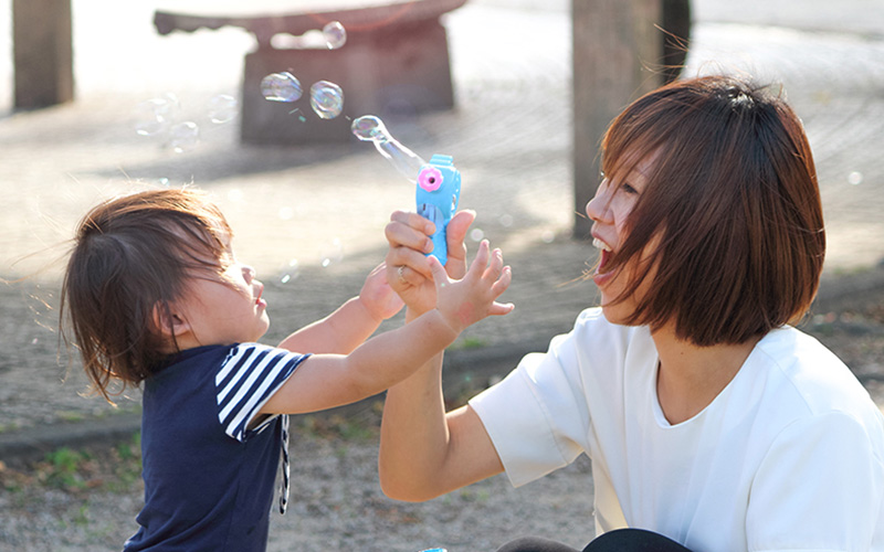 - 明るい笑顔で仲良く遊べる子ども